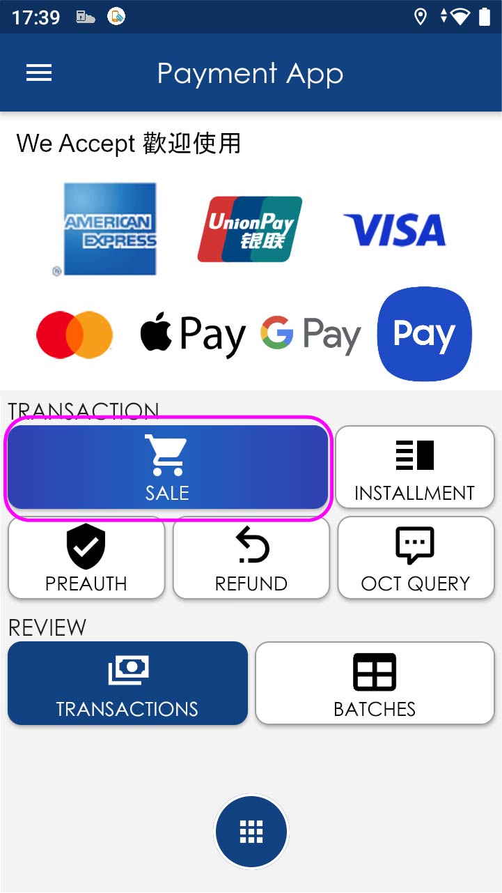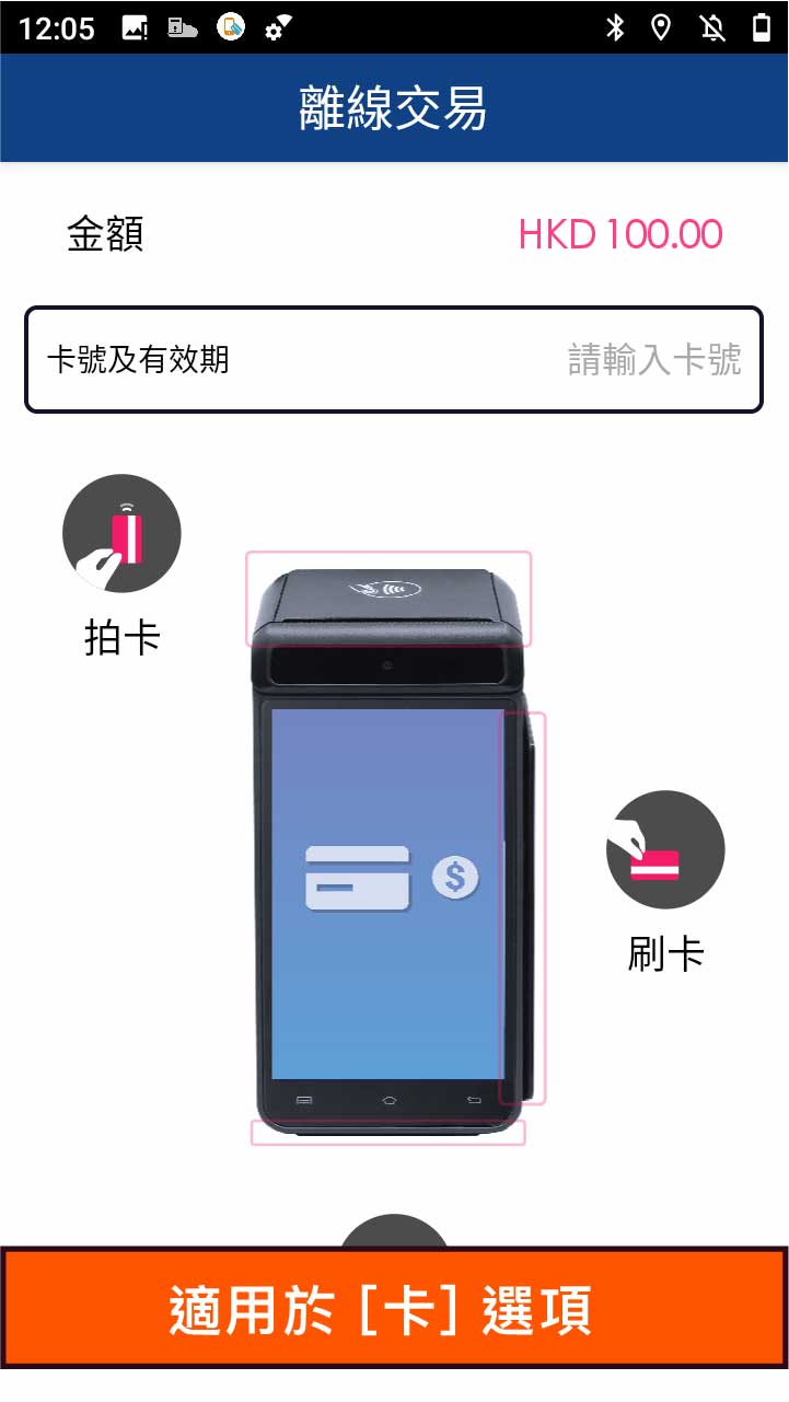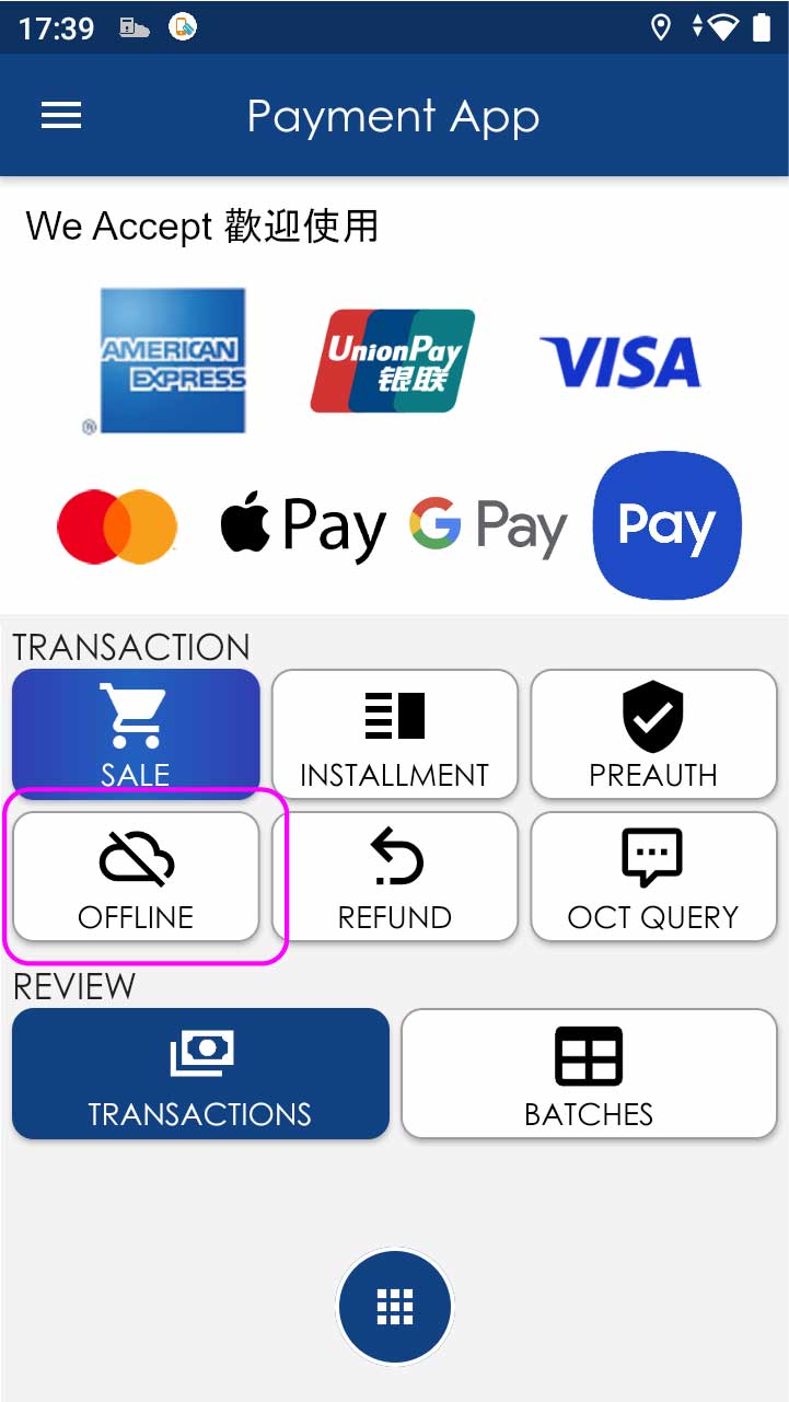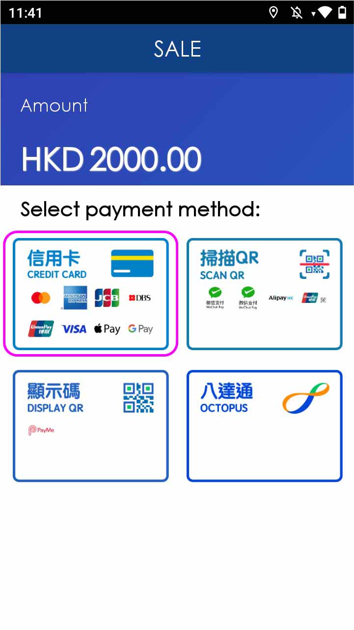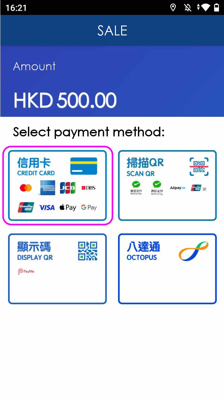 Insert/tap/swipe card OR mobile payment OR manually enter card number & expiry date